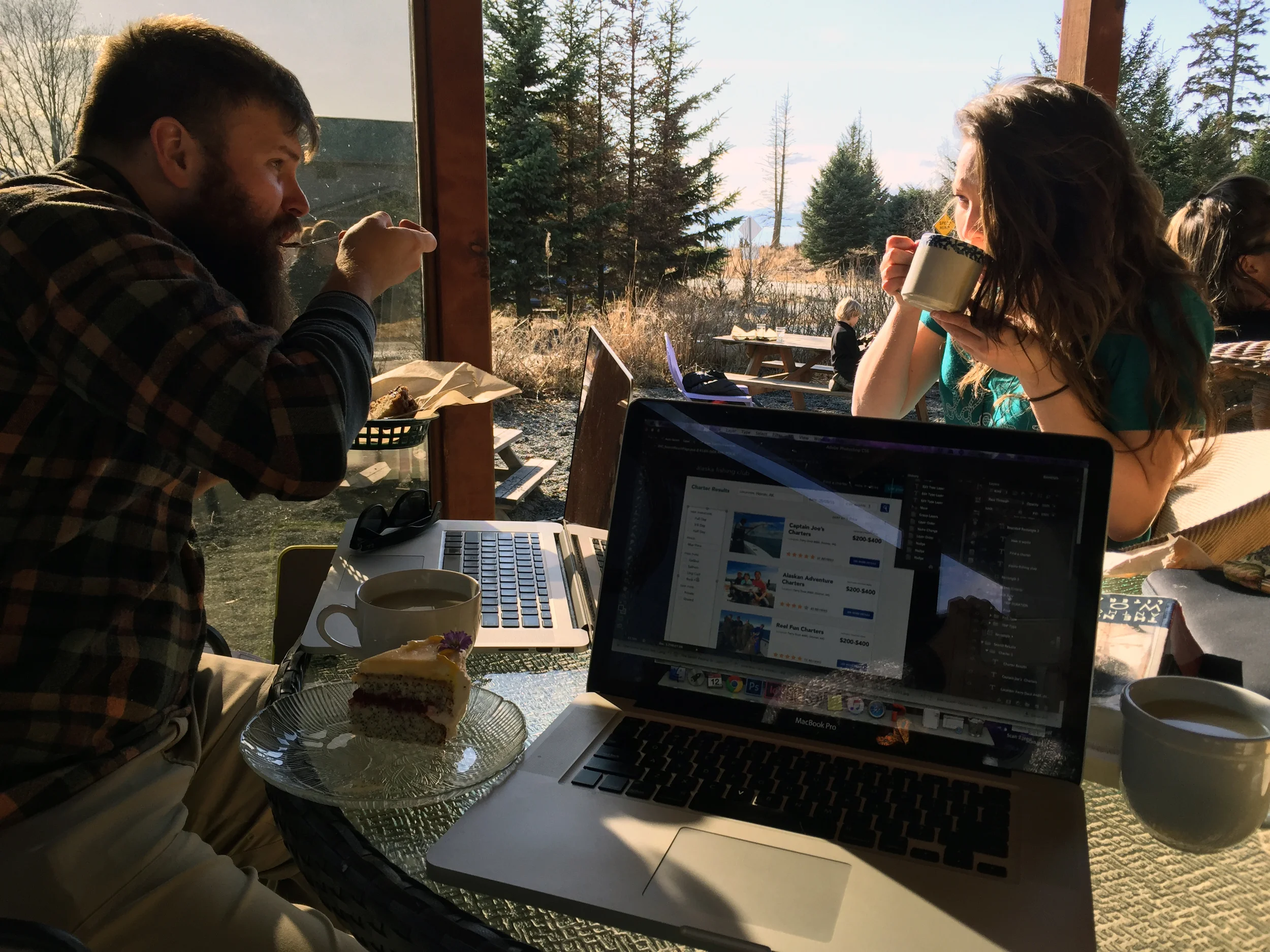 Here is a view of our favorite office space and a preview of the web app/website Lin is working on -naturally, I'm the hired designer. ;) We are working against the clock to get this ready for summer. This little town of Homer, Alaska basically revolves around the summer season and it just comes alive. Known as the Halibut Capital of the World -what a title!- it boasts incredible fishing as people from all over come to get a piece of it. This is our area of focus with this site. Helping people book charters and helping charters have a broader reach to new customers.